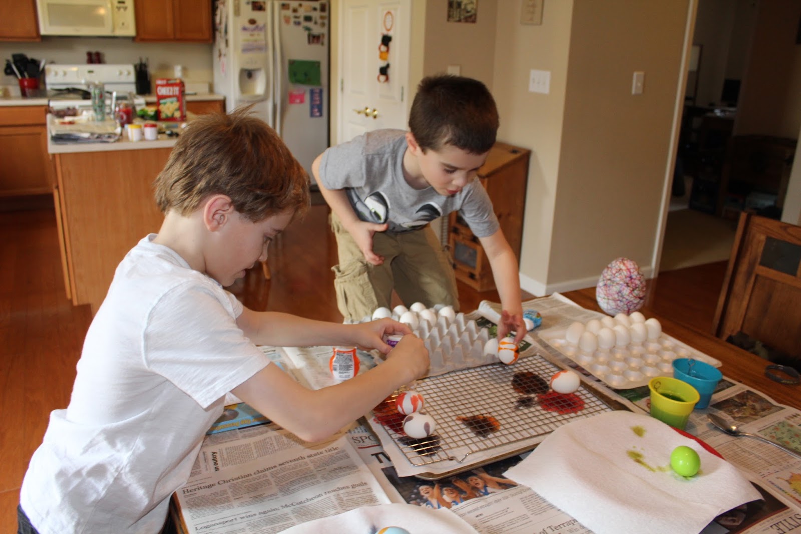We used several techniques since we had a big batch of eggs. They squirted liquid koolaid directly on some, did regular egg coloring and each made a Yoshi egg (from Mario Bros) with a sharpie.